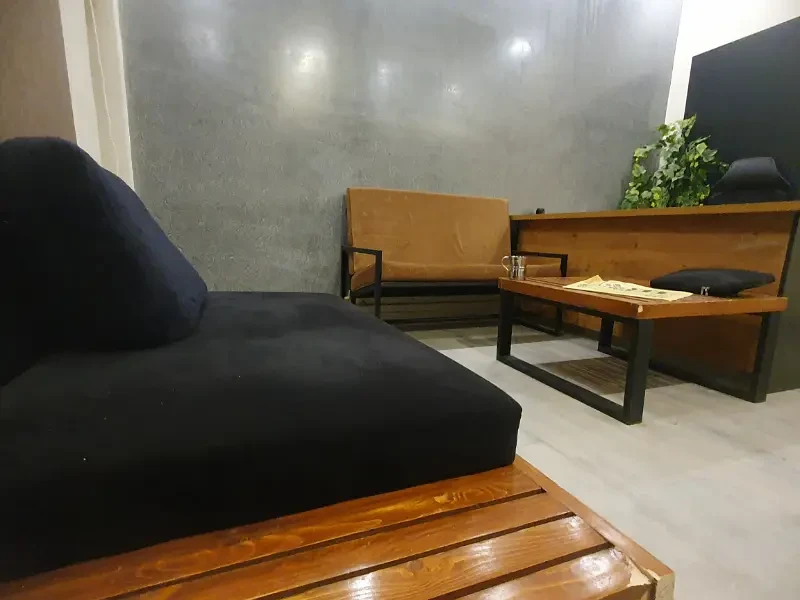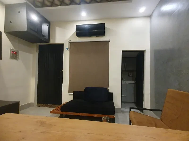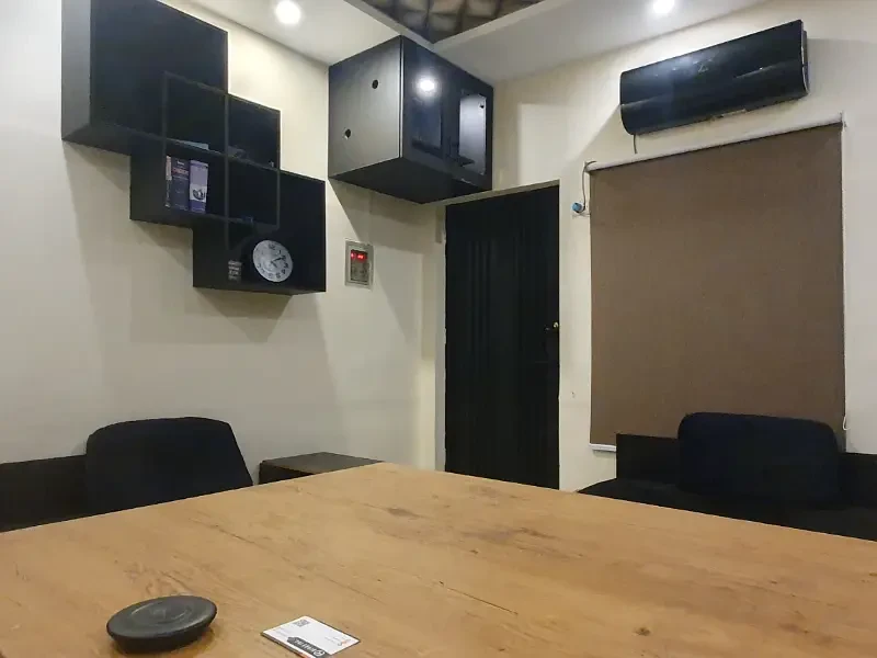 Fully equipped with tables, chairs, AC cupboard, lights, fans, oven, kettle, UPS, crockery, and sofa seating—ready for immediate use in a professional setting.