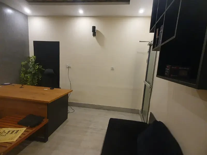 Brand new, fully furnished office available for rent at Rs. 92,000 all-inclusive. Features 2 rooms (1 executive, 1 staff) accommodating up to 8 people, waiting/dining area, attached kitchen, and bath.