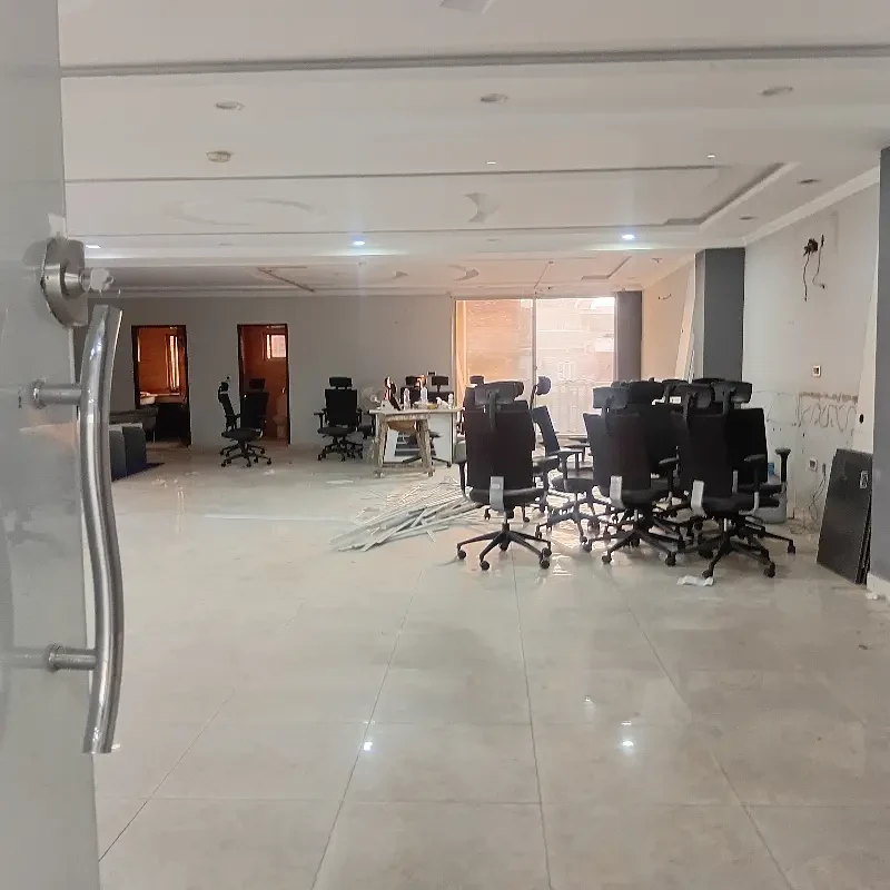 An office floor is available for rent in Gulberg 3, featuring a prime location facing the main road. The property includes a kitchen, a bathroom, and a lobby, providing a functional and professional workspace for businesses.