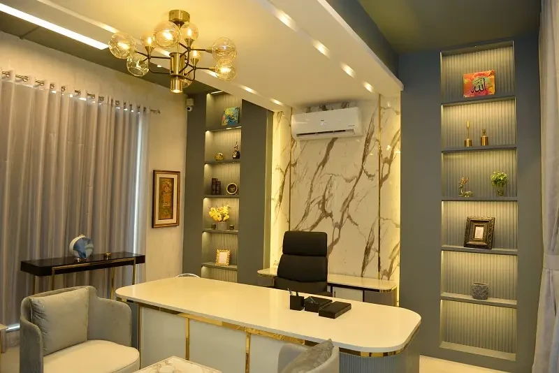A 4,500 sq. ft. commercial hall on the ground and mezzanine floors is available for rent in Moon Market, Iqbal Town, a prime location on the main boulevard.