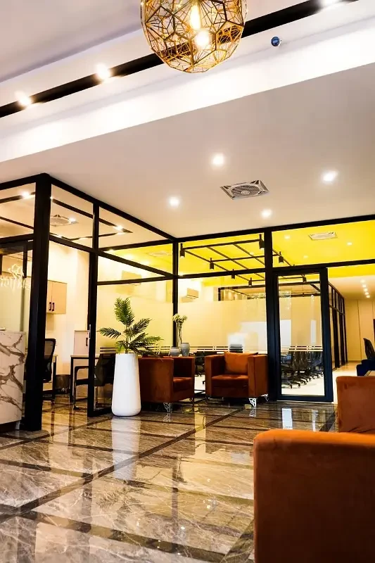 The hall includes furnished seating for 70 persons and is ideal for corporate events, conferences, or professional setups in a prime and accessible location.
