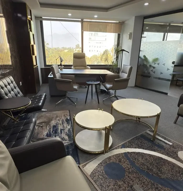 A fully furnished 4,000 sq. ft executive office is available for rent on the 2nd floor in Blue Area, Islamabad. Located in a high-footfall commercial zone, the office includes 5 executive rooms, a meeting room, 4 bathrooms, a kitchen, modern interior, lift access, generator backup, and parking.