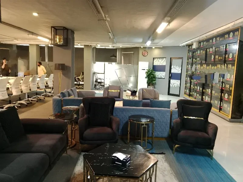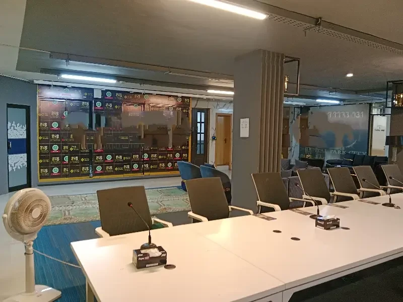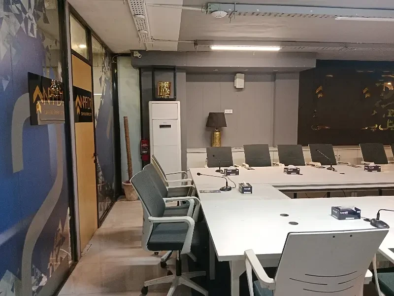 A fully furnished 3,000 sq. ft. office is available for rent on Jinnah Avenue, Blue Area, Islamabad, with views of the Margalla Hills. The office includes executive cabins, workstations, a conference room, reception, and waiting lounge, with central cooling/heating and high-speed internet. Rent is 7.5 lakh PKR per month.