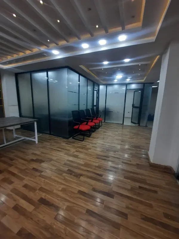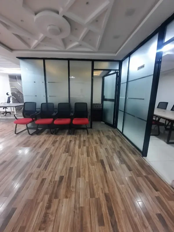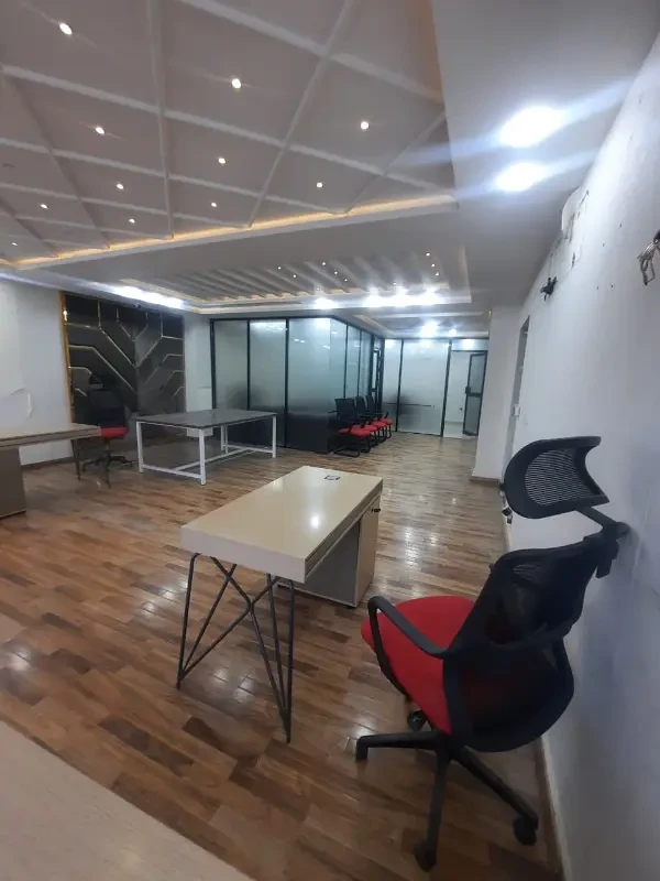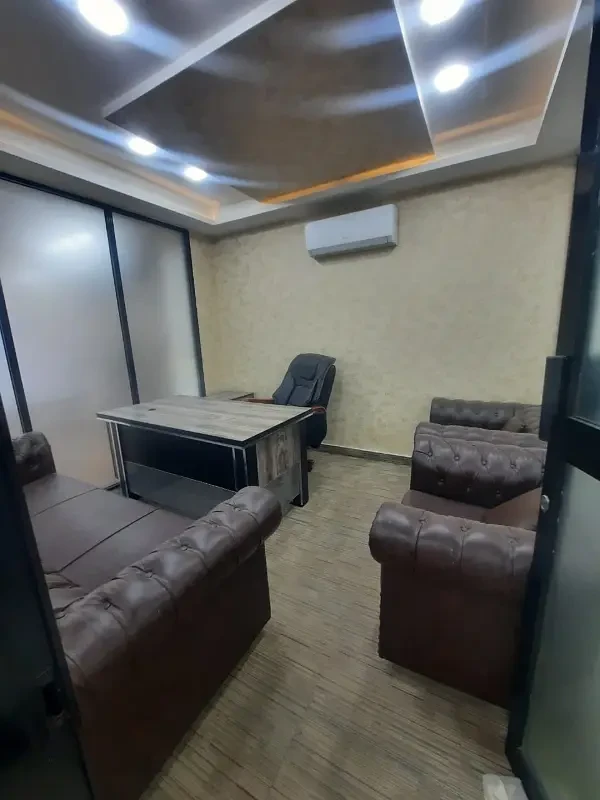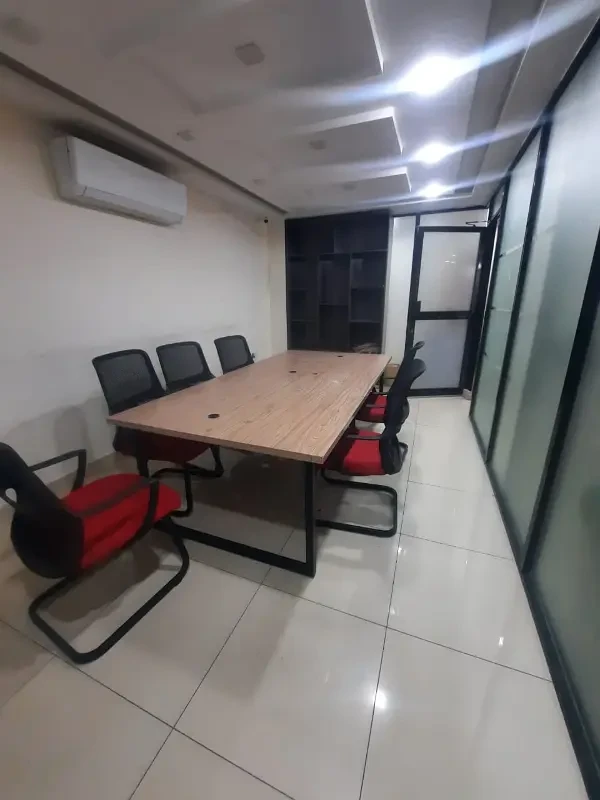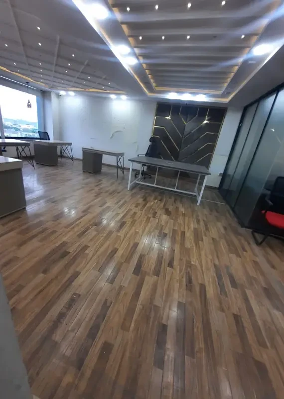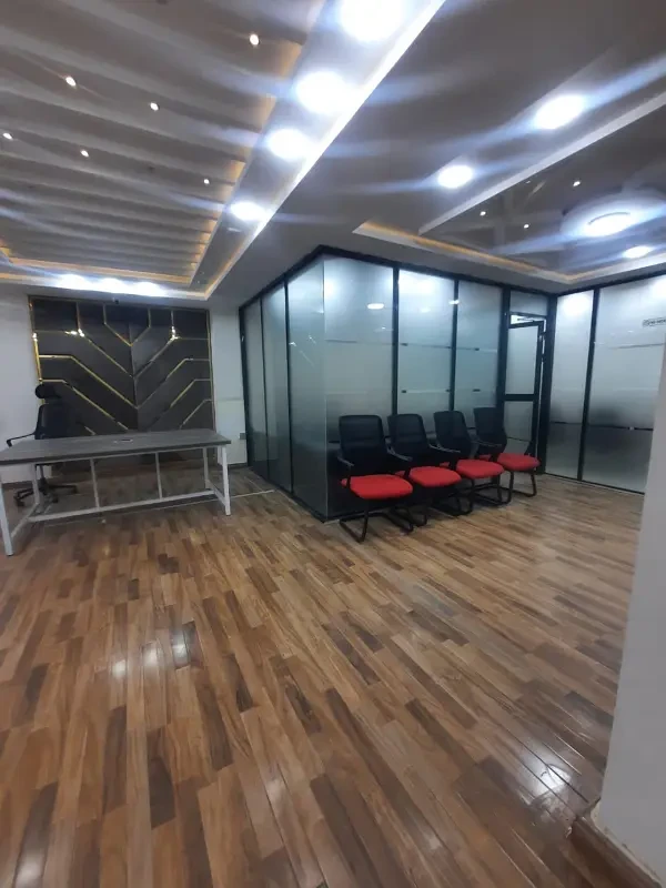 A fully furnished office is available for rent in DHA Phase 2, Islamabad, at Rs. 1.60 Lac per month. It includes a meeting room, CEO room, attached washroom and kitchen, and wooden flooring.