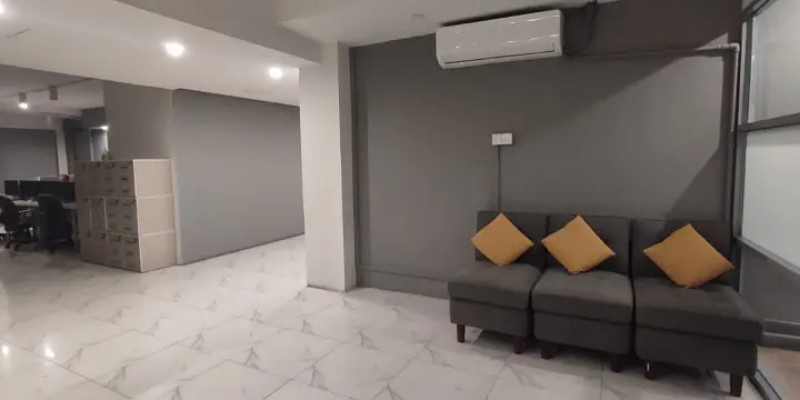 Fully furnished 6,000 sq. ft. office available for rent in F-7, Islamabad. Features include lift, HVAC, AC inverters, power backup, and two-side parking.