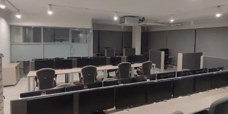 Rooftop sitting area with Margalla Hills view, fire-fighting system, smoke detectors, and on-site management ensure a secure and well-maintained workspace.