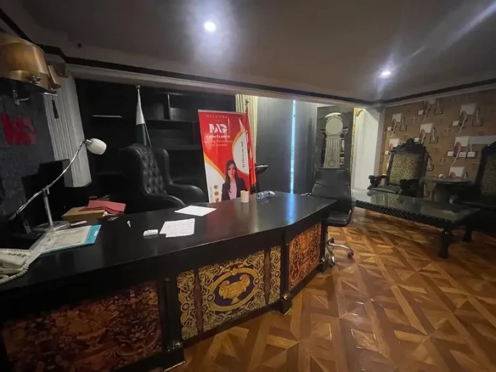 A fully furnished 1,800 sq. ft. office floor is available for rent in DHA Phase 5, Main Khe Badar, Karachi, for Rs. 1.55 lac per month. The office features 2 chambers with furniture, faces a bungalow, and is conveniently located near 26th Street and Pie In the Sky Baker.