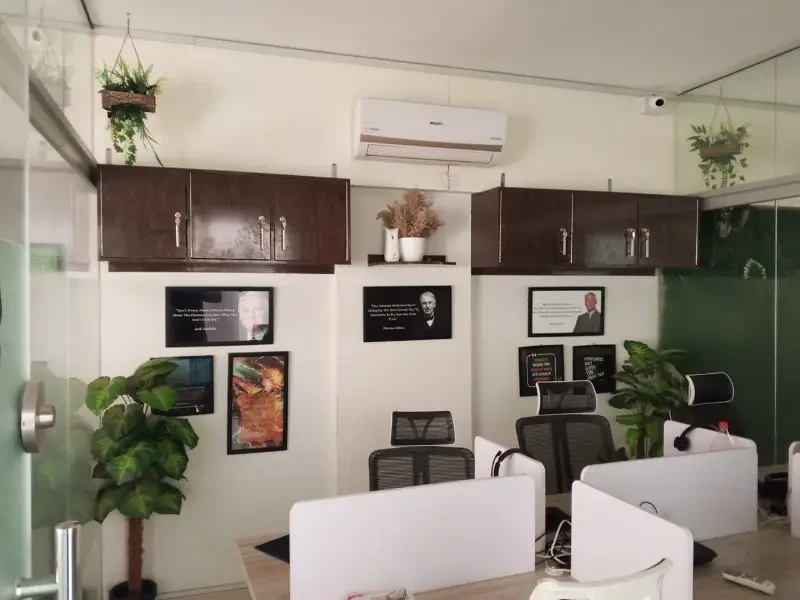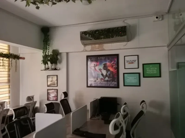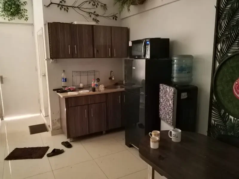 Fully furnished 1,200 sq. ft. office for rent on the 3rd floor in Main Jami Commercial, DHA Phase 7, Karachi. The building offers lift access and a prime commercial location.