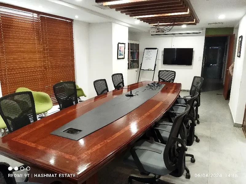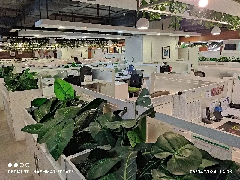 Additional amenities include a server room with complete networking infrastructure, 3–4 storage rooms, a kitchen, dining area, prayer room, and designated wazu space. The building’s glass elevation further enhances its modern and corporate appeal.