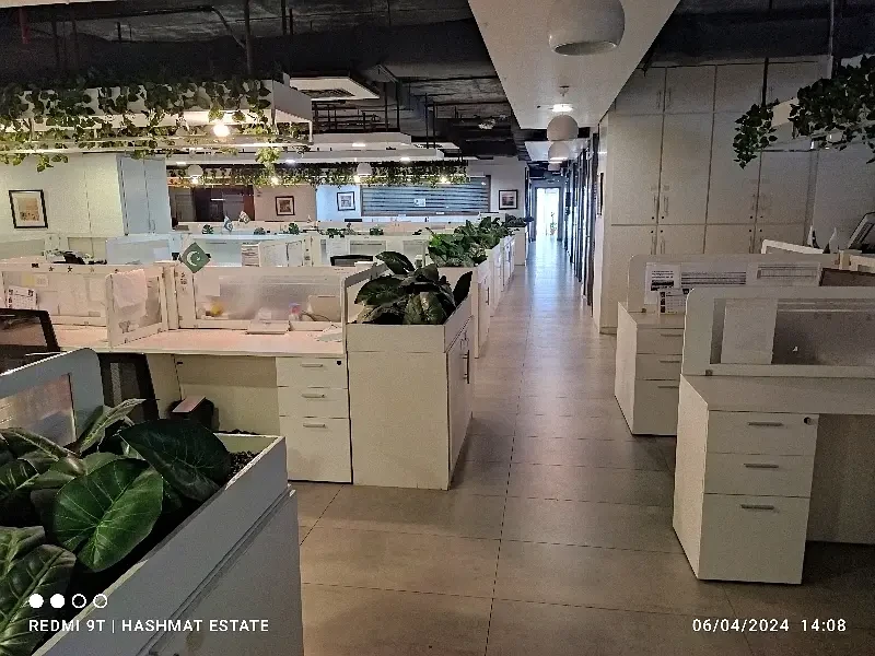 A premium 15,000 sq ft office space is available on Main Khayaban-e-Iqbal, Clifton Block 9—one of Karachi’s most prestigious commercial corridors. This centrally air-conditioned facility is offered fully furnished or unfurnished, providing flexibility for corporate, multinational, or large-scale operational setups. The building operates 24/7 with round-the-clock security, a standby lift, full power backup, and dedicated parking for up to 13 cars.