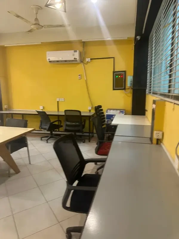 The space comes with three air conditioners, office tables, staff meeting tables, chairs, and fire safety cylinders, ensuring a comfortable and secure working environment for all employees.