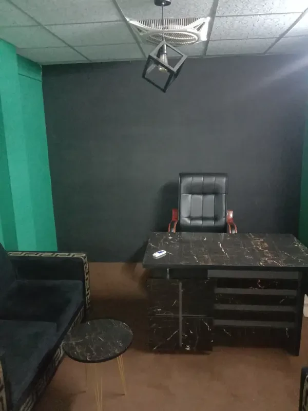 A fully furnished VIP office with reception, executive room, meeting room, and 10 workstations. Equipped with air conditioning, high-speed internet, backup generator, CCTV security, and furniture & fixtures.
