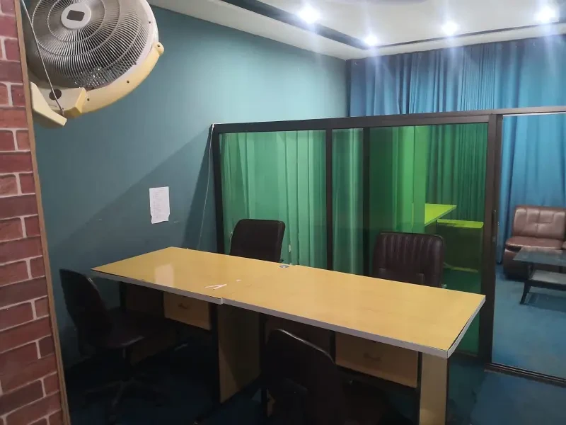 350 sq. ft. brand new fully furnished corporate office for rent on Main Boulevard, Gulberg 3, Lahore. Includes 1 executive room, staff hall, and 1 washroom. Prime location, ready for immediate use.