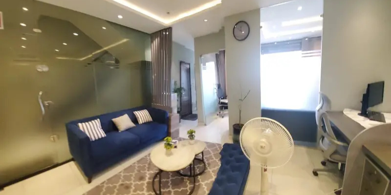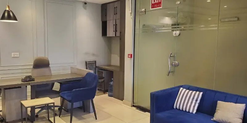 It includes a boss cabin, seating for 10 persons, modern décor, three air conditioners, UPS, CCTV, kitchen setup, and washroom. Rent is PKR 170,000 per month with three months’ security and two months’ advance.