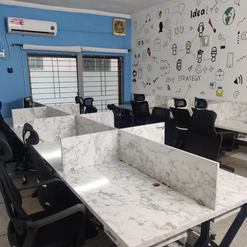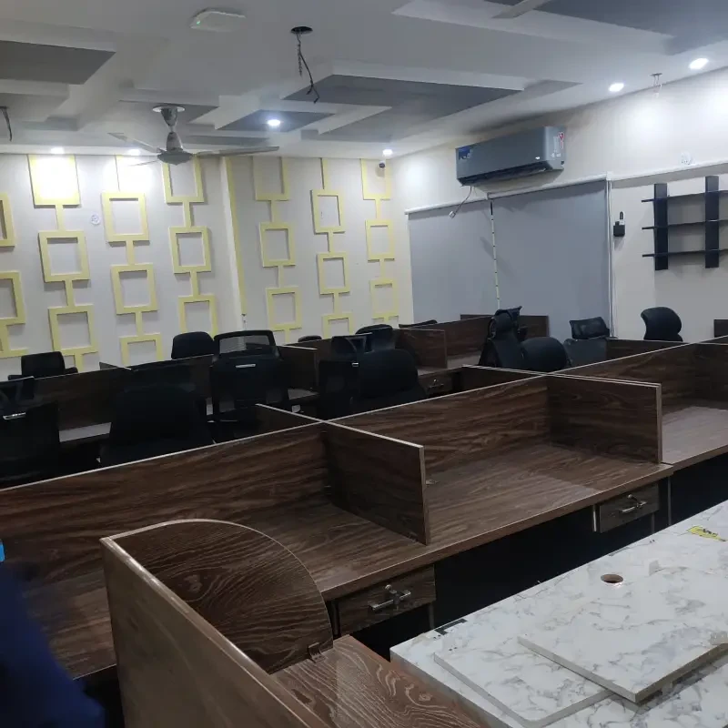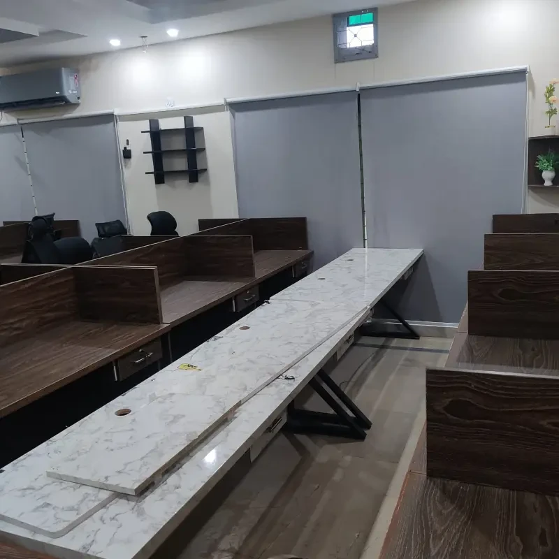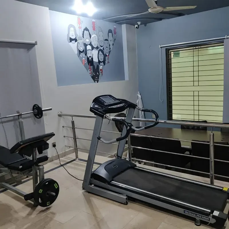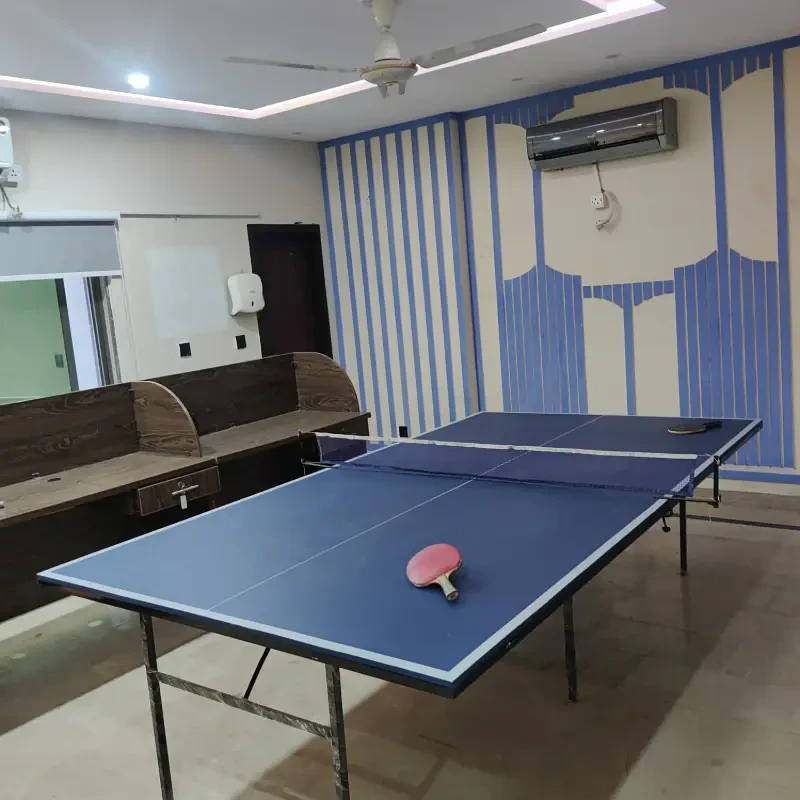 A fully furnished commercial building is available for rent, accommodating 100+ workstations. The property features 10+ rooms with attached washrooms, multiple executive offices, meeting rooms, a gym, and a prayer area.