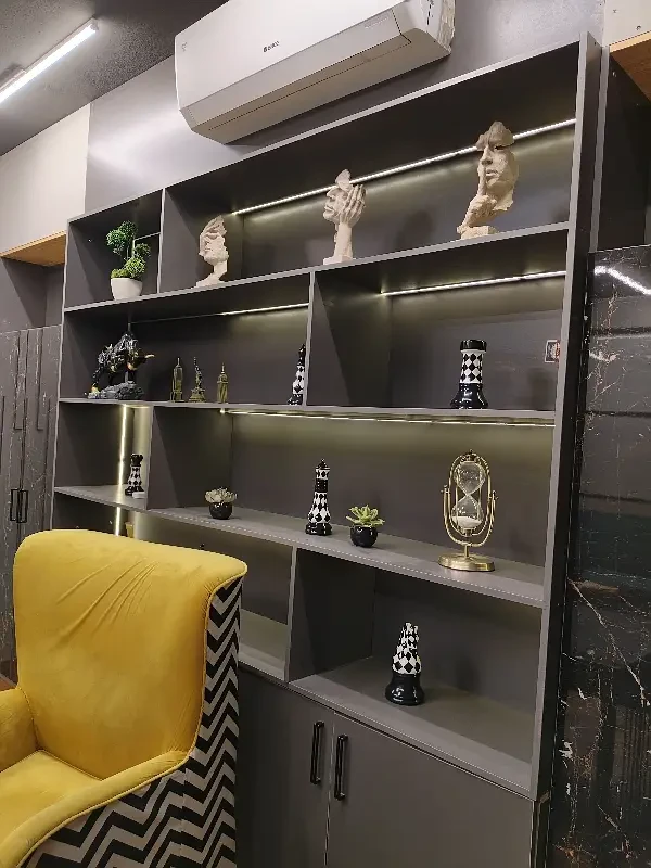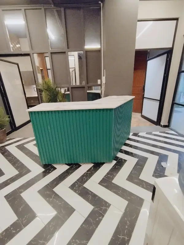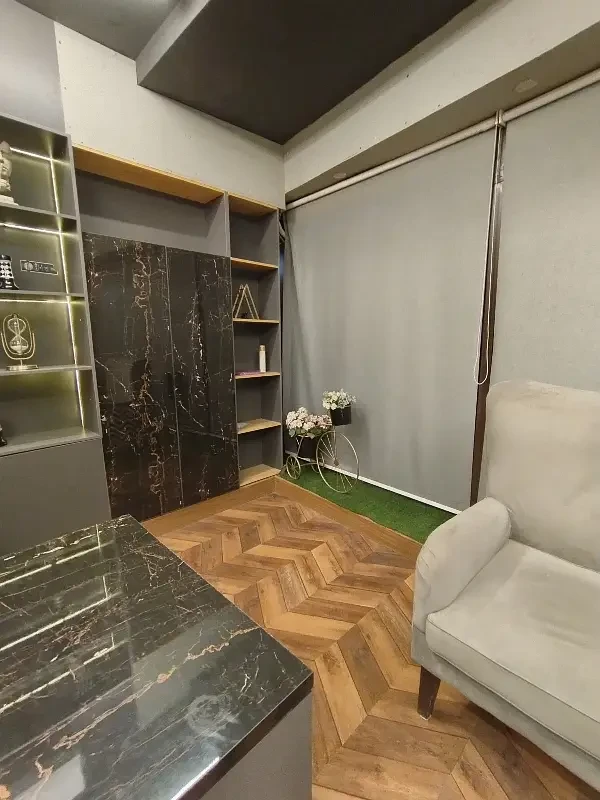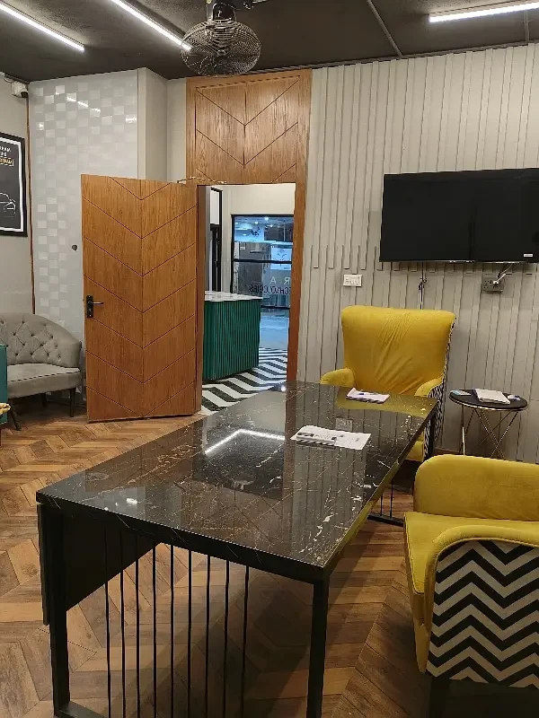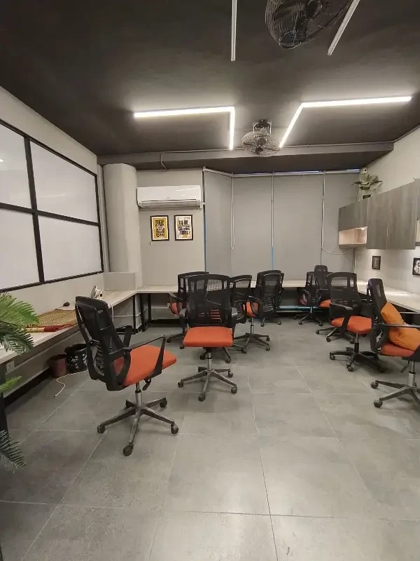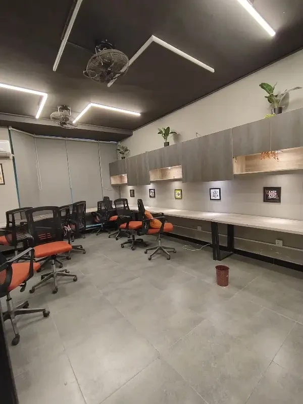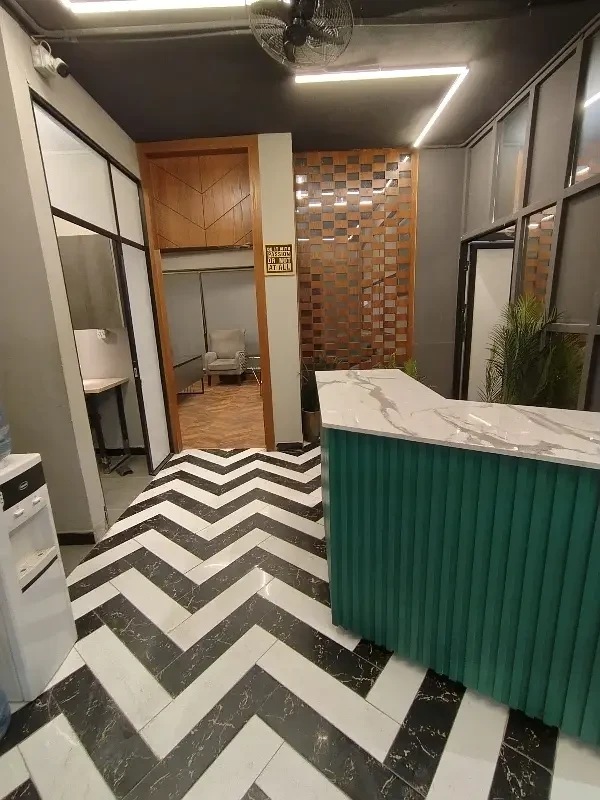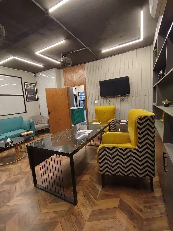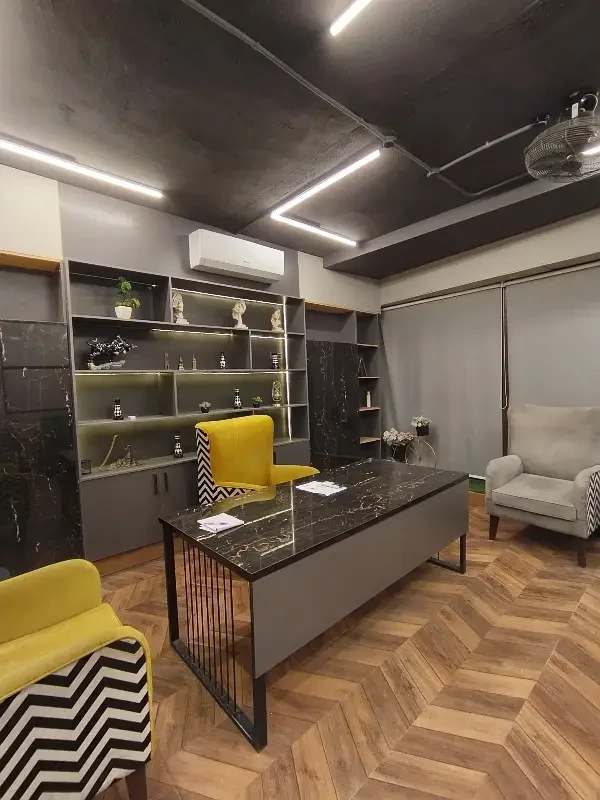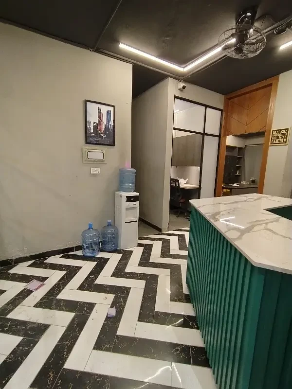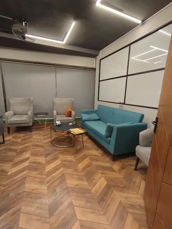 A fully furnished office is available for rent in F-11 Markaz, located on the 1st floor near HBL Bank. The office features new furniture, installed air conditioning, and includes a kitchen and bathroom.