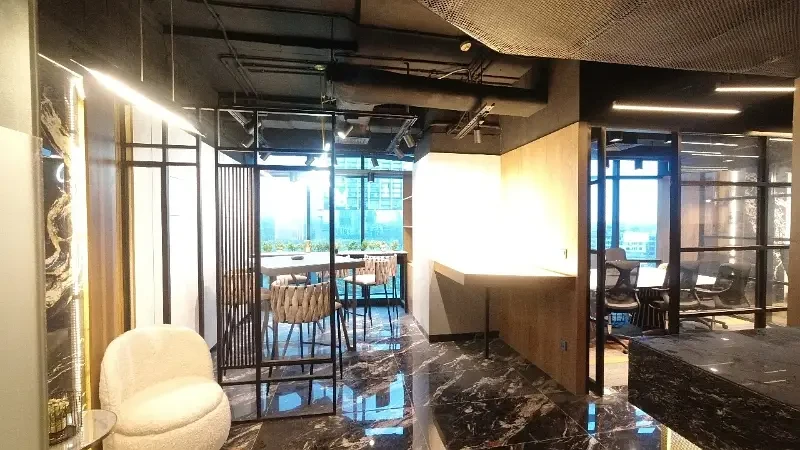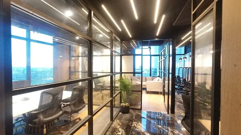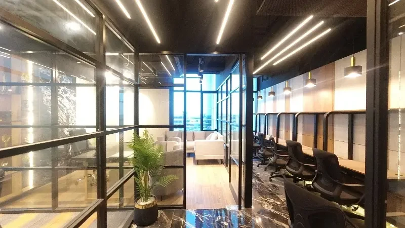 The office features contemporary furnishings, a central HVAC system for year-round climate control, and reliable power backup through a dedicated generator. The building is equipped with 24/7 security and CCTV surveillance, ensuring a safe and secure working environment, along with professional janitorial services to maintain high standards.