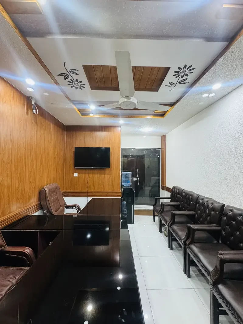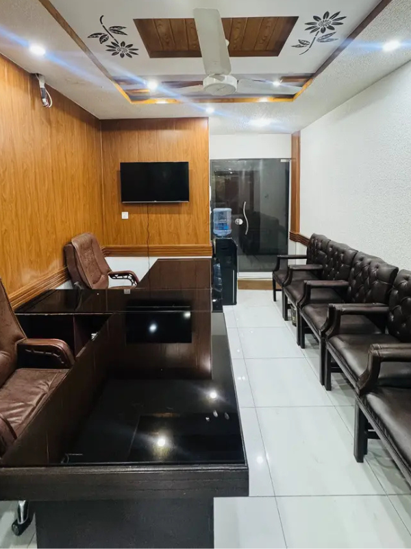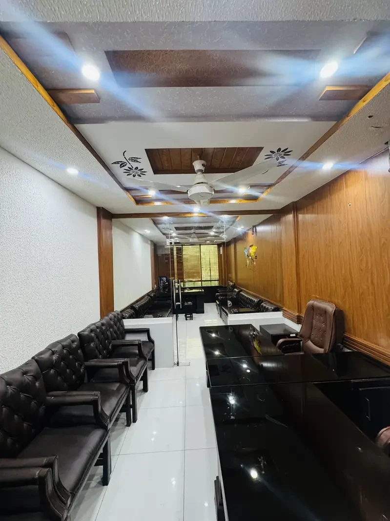 Includes executive and manager furniture, sofa sets, safe locker, CCTV, LED lighting, UPS, and water dispenser. Ready for immediate occupancy. Contact for details.