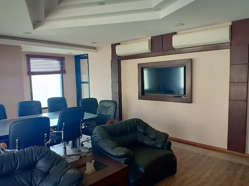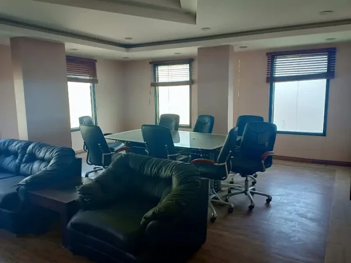 A fully furnished VIP office is available for rent in DHA Phase 5 near 26th Street. The space includes six executive chambers, a meeting room, and three washrooms, with 24/7 access and lift facility.