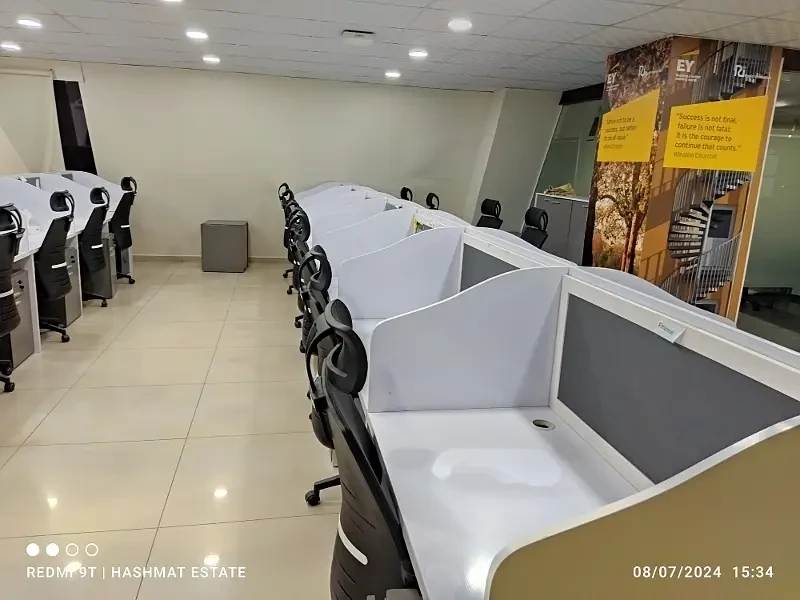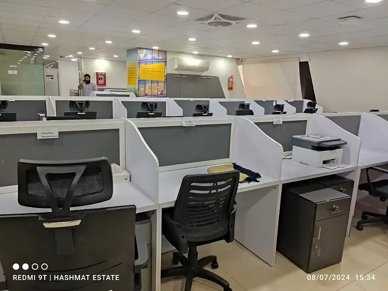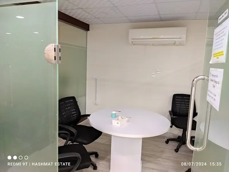 The building operates 24/7 and is equipped with a standby lift, full power backup, and round-the-clock security with CCTV surveillance. Reserved parking is provided for added convenience. The office features built-in glass chambers, cubicles, a conference hall, reception area, and a well-planned waiting space, ensuring a professional and efficient environment for staff and clients.