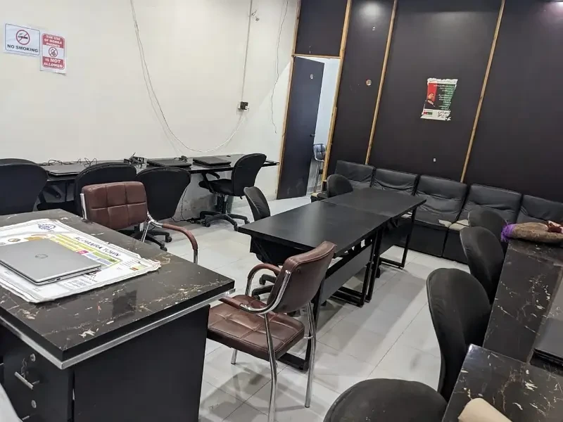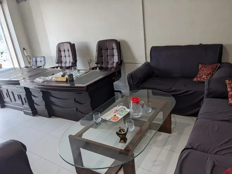 A furnished office is available for rent in Johar Town, Lahore, located on Sher Ali Road. The property is conveniently situated just a 5-minute drive from Emporium Mall and close to DGS Call Center, offering excellent accessibility for clients and staff.