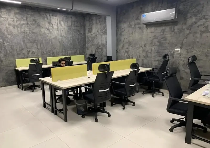 The interior is equipped with more than 50 seating arrangements, including chairs, sofas, workstation setups, cupboards, and wall art. Essential office amenities such as ceiling fans, wall-mounted fans, a dispenser, Wi-Fi devices, server setup, CCTV cameras, and a biometric attendance machine are already installed. A mobile-signal booster approved by PTA is also included, ensuring uninterrupted connectivity.