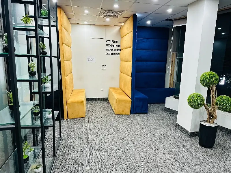 Office Features: The office includes a spacious, fully furnished hall suitable for team setups, brand-new tiled flooring, a private executive room for focused work, and a dedicated meeting room perfect for client interactions or presentations. It also offers a separate kitchen and bathroom for added convenience, along with a modern ceiling design and elegantly decorated walls that give the office a premium look and feel.