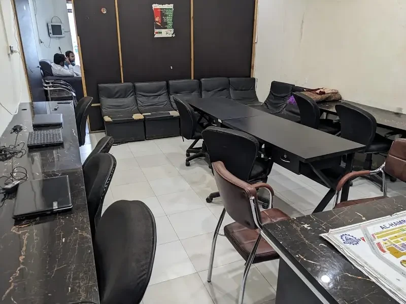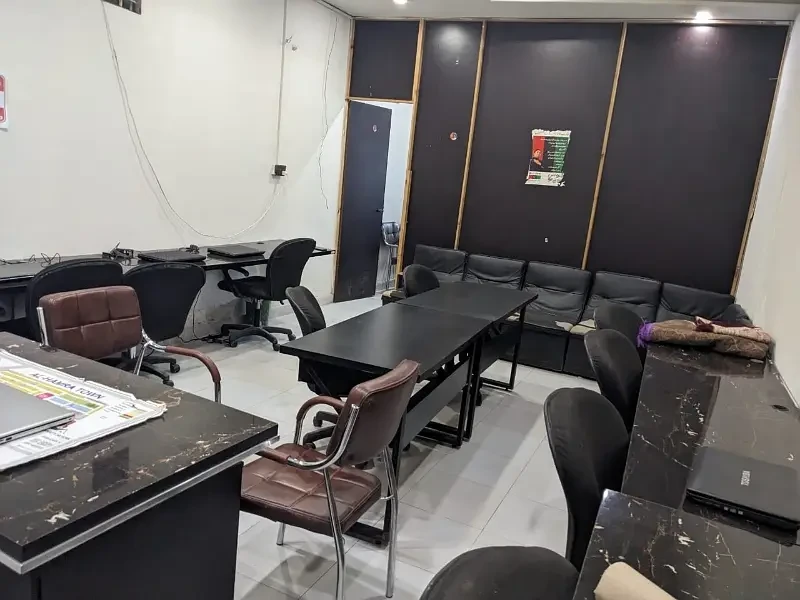 A furnished office is available for rent on Sher Ali Road, just a 5-minute drive from Emporium Mall and close to DGS Call Center. The office is designed to accommodate 15–20 people, making it suitable for teams or small to medium-sized businesses.
