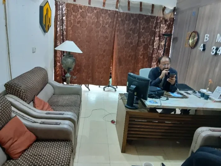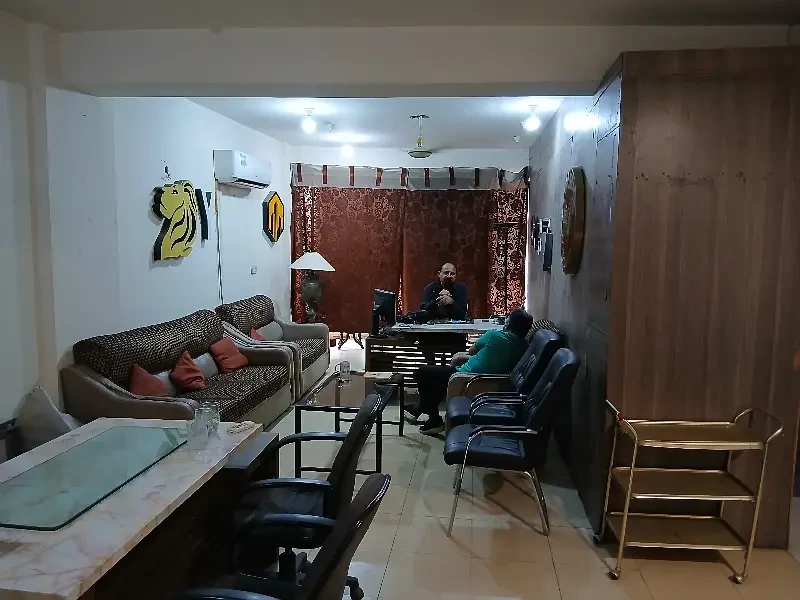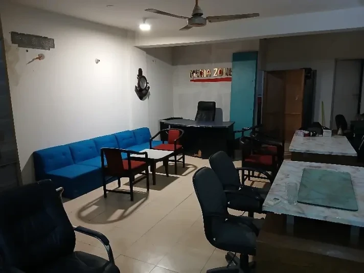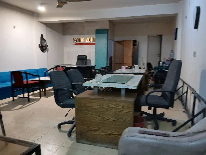 Fully furnished office for rent on Airport Road, Lahore, with shared bath and kitchen.
