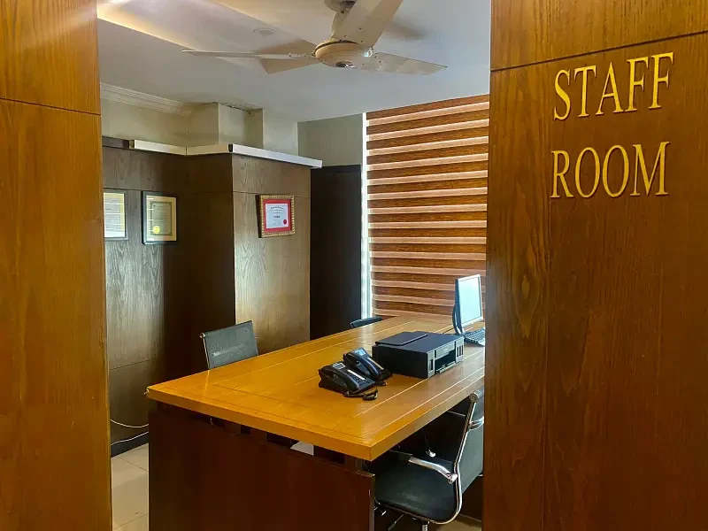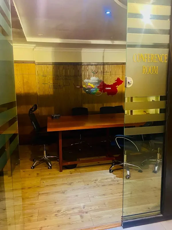 The office features a spacious lounge and sitting area, ideal for welcoming clients and guests in a professional setting. A dedicated meeting room is also included, providing a private and well-equipped space for discussions, presentations, and team collaborations. Every detail of this office has been carefully planned, with elegant furnishings and a modern layout that enhances both productivity and corporate image.