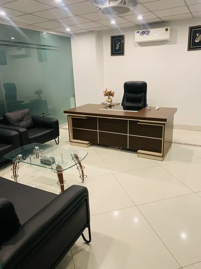 Furnished offices and coworking spaces are available for rent in Shams Abad, Rawalpindi, starting at Rs 7.50 Lac. The facility offers a professional environment suitable for companies seeking ready-to-operate workspaces.