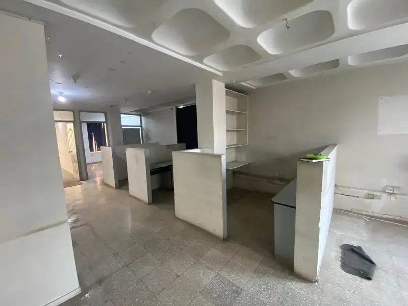 A 1,000 sq. ft. commercial office is available for rent in a prime Gulberg location. Features include 1 washroom, kitchen, tile flooring, newly painted walls, and suitable woodwork.
