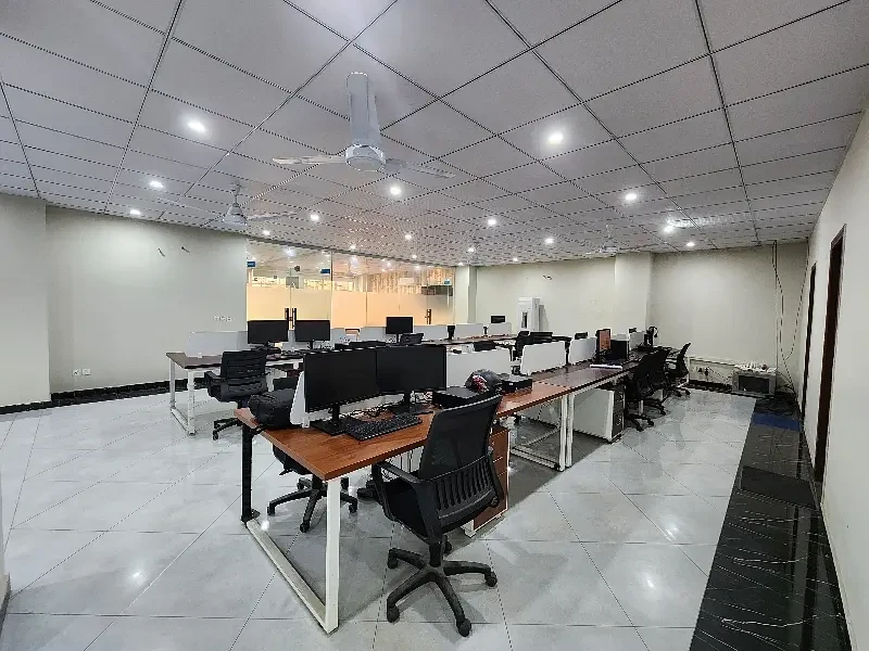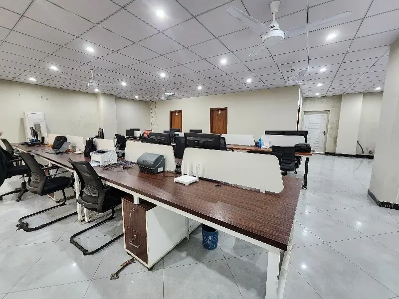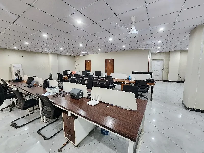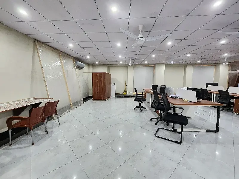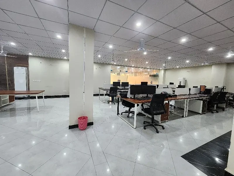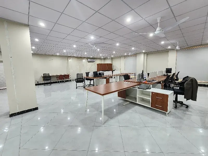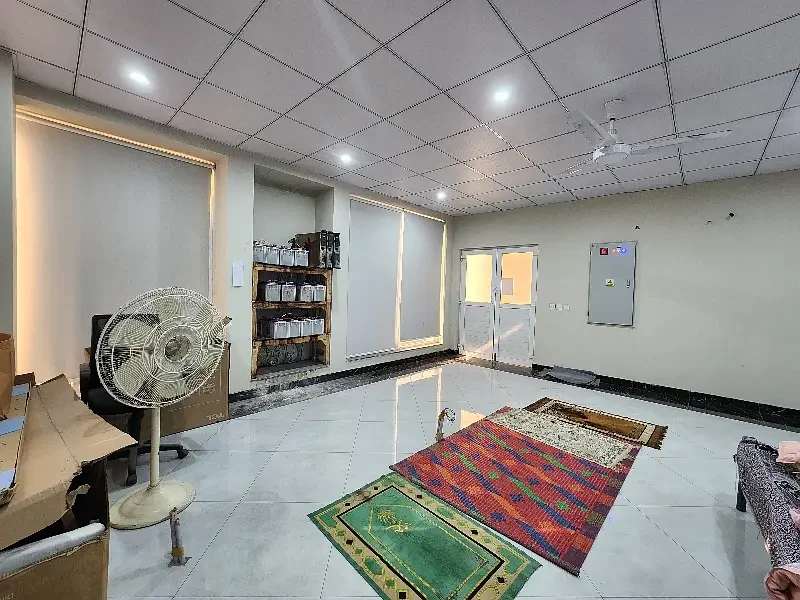 The hall includes four washrooms, one kitchen, tile flooring, and ample parking space, ensuring convenience for staff and visitors. The demand is PKR 5.5 lac per month, making it an excellent option for corporate offices, showrooms, or commercial operations in a prime location.