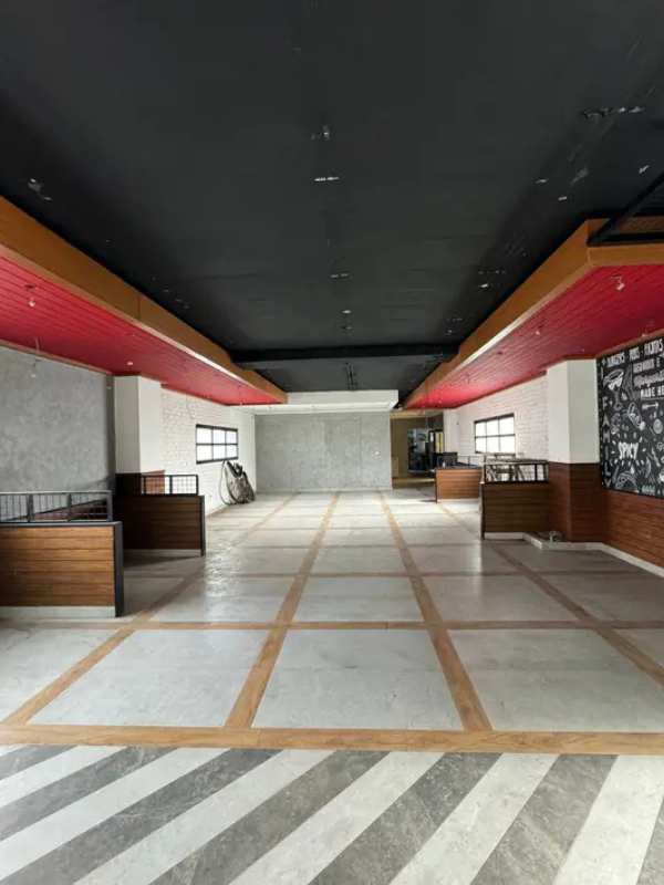 The property features marble flooring and a spacious layout, complemented by a huge car parking area for customer convenience. Its strategic location places it near busy commercial markets, popular restaurants, clothing stores, and salons, making it an ideal spot for attracting a steady stream of customers.