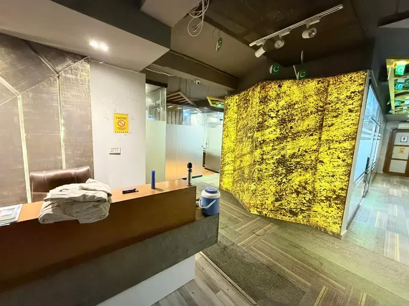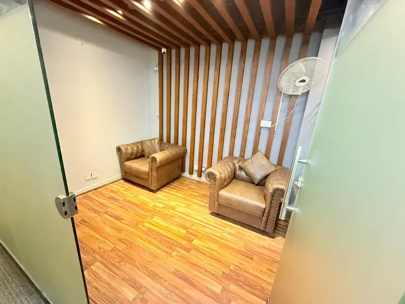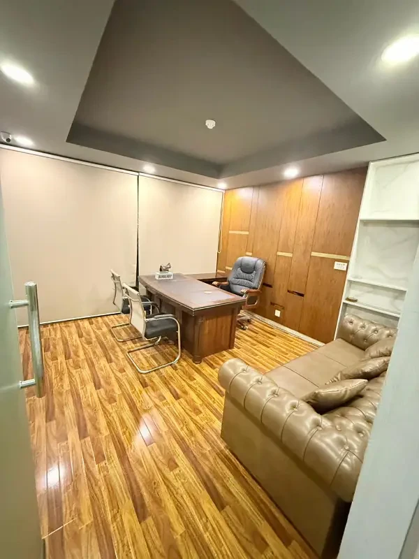 The office includes two executive rooms, a dedicated meeting room, a welcoming reception area, a well-equipped kitchen, a convenient store room, and a designated smoking area. For added comfort and efficiency, it features a powerful 16-ton air conditioning system, a 10 kVA UPS for PCs, and a 2.4 kVA UPS for lighting to ensure seamless operations. The premises are secured with eight surveillance cameras, and the layout includes two washrooms and a girls’ common room to provide a complete professional setup.