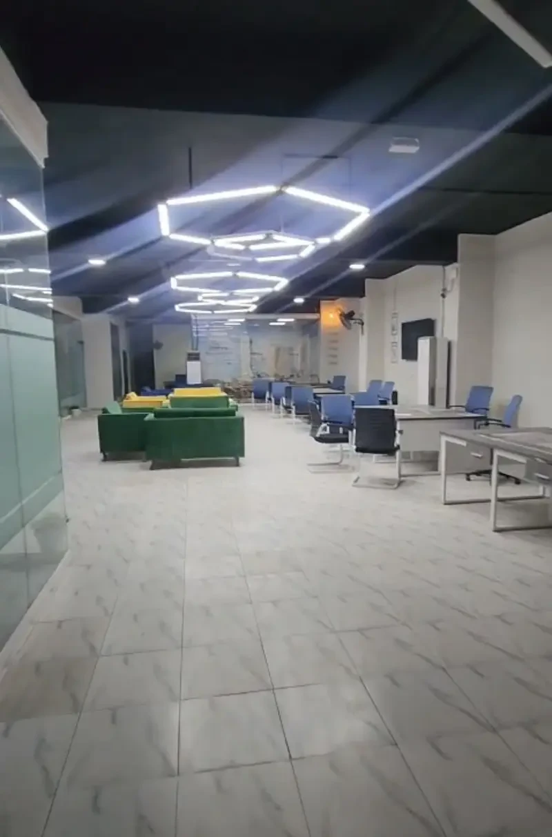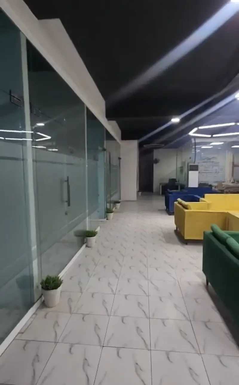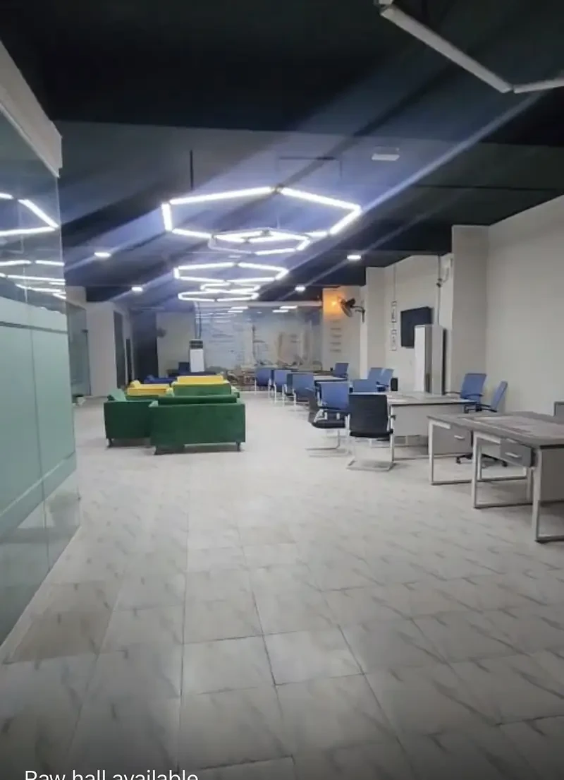 A 2,100 sq. ft. first-floor hall is available for rent at Rs. 1.45 lac on Main Boulevard Road, D Ground, Faisalabad.
