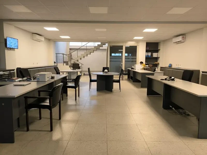 A 3,000 sq. ft executive office is available for rent in a separate plaza in I-8, Islamabad. Featuring reception, managerial cabins, executive offices with attached baths, conference and meeting rooms, halls, kitchen, and separate washrooms, it is ideal for corporate or professional setups. The space includes marble and tile flooring, full networking, and ample inside and outside parking, with walking distance to the Metro Bus.