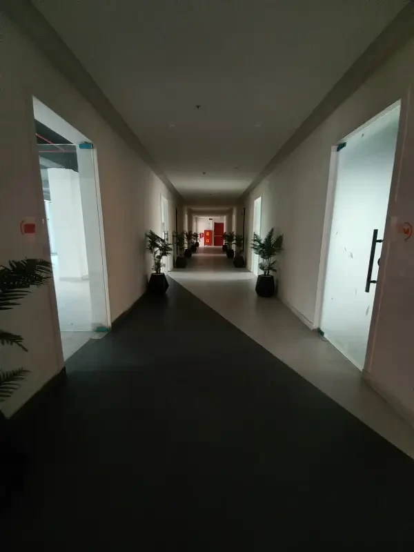 The office features a spacious hall, ceiling finishes, tiled flooring, a bathroom, and an open kitchen. Essential facilities include lifts, fire-fighting equipment, 24/7 security cameras, and an on-site security guard, ensuring a safe and functional work environment. Both front and back parking spaces provide convenience for staff and visitors.