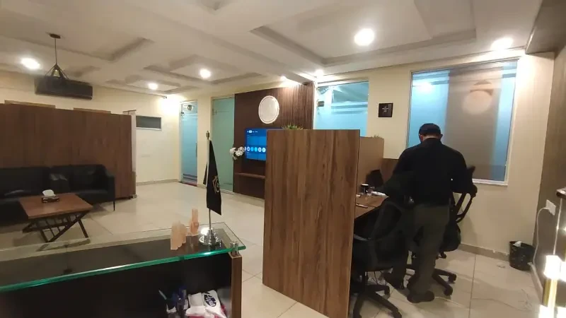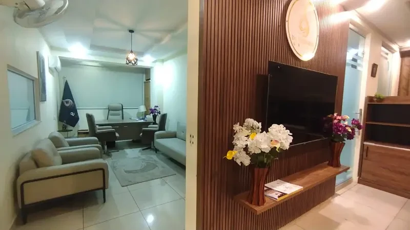 A spacious office of 1,300 sq ft (Size 33×39) is available for rent on the 2nd floor of a neat and well-maintained plaza in a VIP location of Islamabad. The plaza is equipped with a lift, providing easy access and convenience for staff and clients. Its prime location ensures excellent visibility and accessibility, making it ideal for professional businesses, consultancies, and corporate offices.