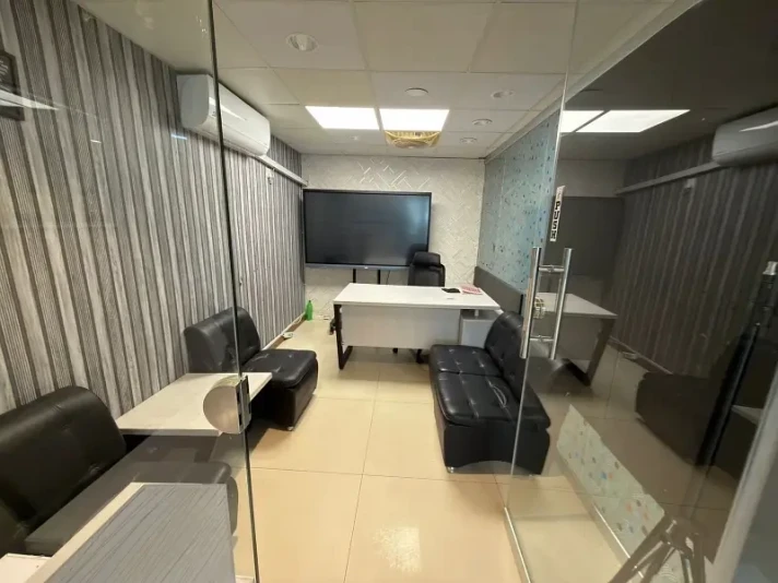 Fully furnished 963 sq. ft. office available for rent on the mezzanine floor of Margallah View, located on Jinnah Avenue, Blue Area, Islamabad. The unit includes 4 separate offices, 20 workstations, a washroom, kitchen, 5 new inverter ACs, and a separate WAPDA meter. No work required—ready to move in. Rent demand is Rs 350,000 (Rs 330,000 final) with 3 months’ advance and 3 months’ security. For visits, please contact: