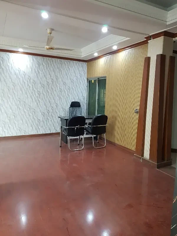 Unfurnished office for rent in G-11 Markaz, Islamabad, offering 1,500 sq. ft. on the 2nd floor. Fully renovated with wood flooring, 2 bathrooms, and 1 kitchen, this corner office is in a prime location up to Punjab Bank.