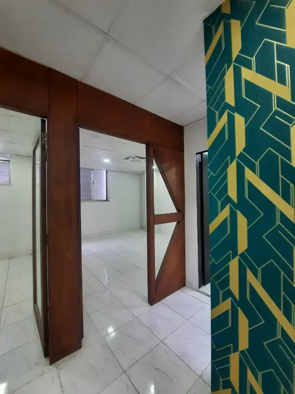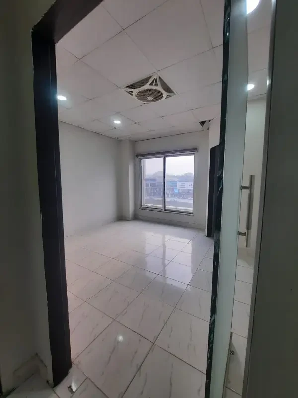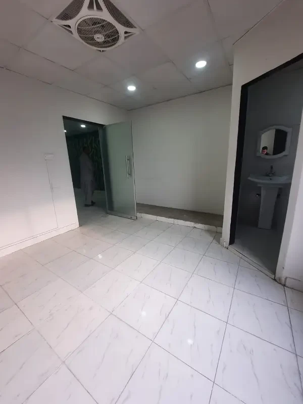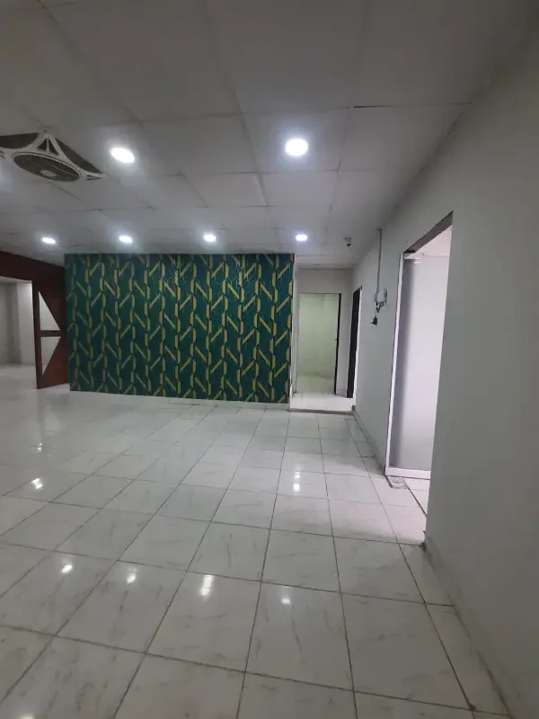 A complete office floor is available for rent in DHA Phase 2, Islamabad, for Rs. 2 Lac per month. The space includes six rooms, four washrooms, an attached kitchen, and built-in partitions.