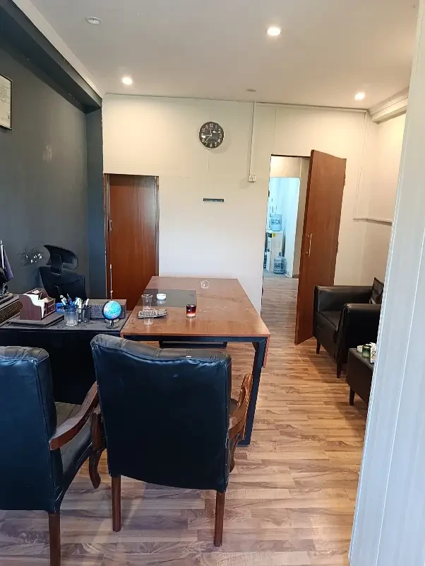Furnished 3rd-floor office on Jinnah Avenue, Blue Area, Islamabad, with Margallah views. Includes an executive cabin with attached washroom, team office with separate washroom, meeting room, and kitchen cabinet.