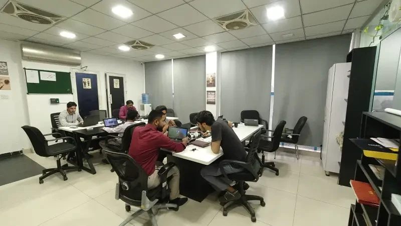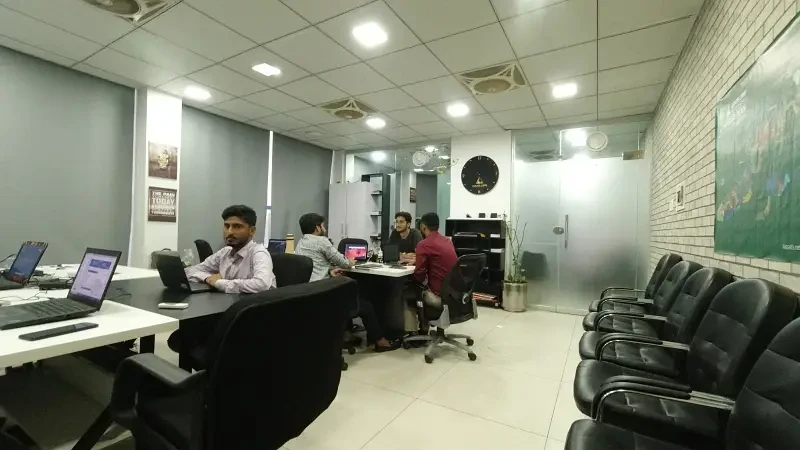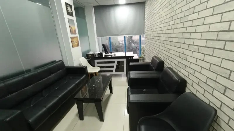 The office features a spacious hall, bathroom, kitchen, tiled flooring, finished ceiling, high-speed internet, and open car parking. Prime location and ready-to-use space make it perfect for professional businesses.