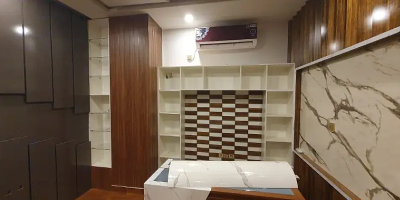 Unfurnished office for rent at Burj-ul-Minal 2, Main Munawar Chowrangi, Gulistan-e-Jauhar. Furniture from the current tenant is available for sale separately.
