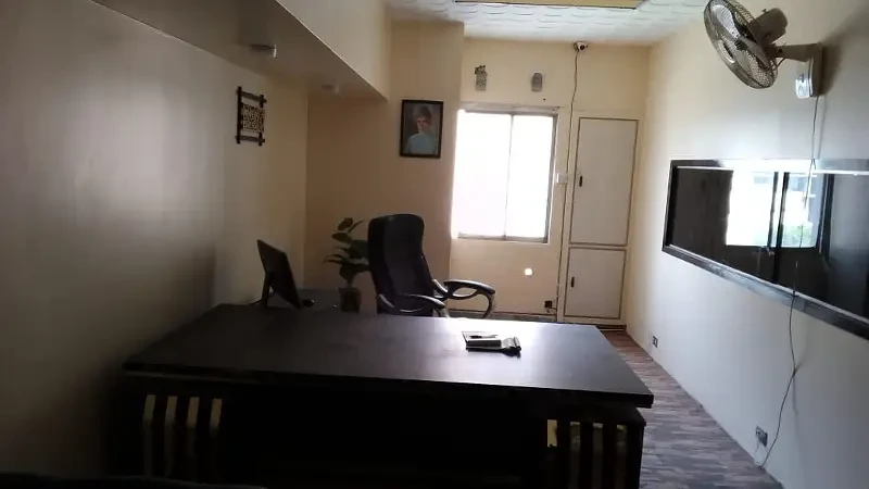 A fully furnished office is available for rent on Sharah-e-Faisal at Rs. 1.25 Lac per month. The office includes a spacious work area, meeting room, manager’s cabin, and modern furniture.