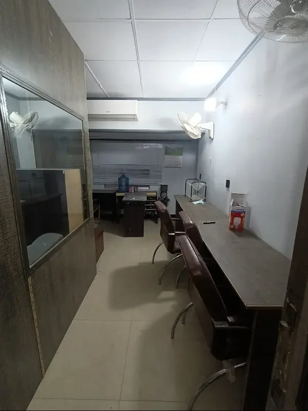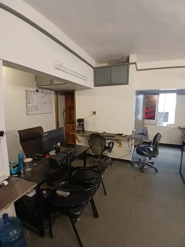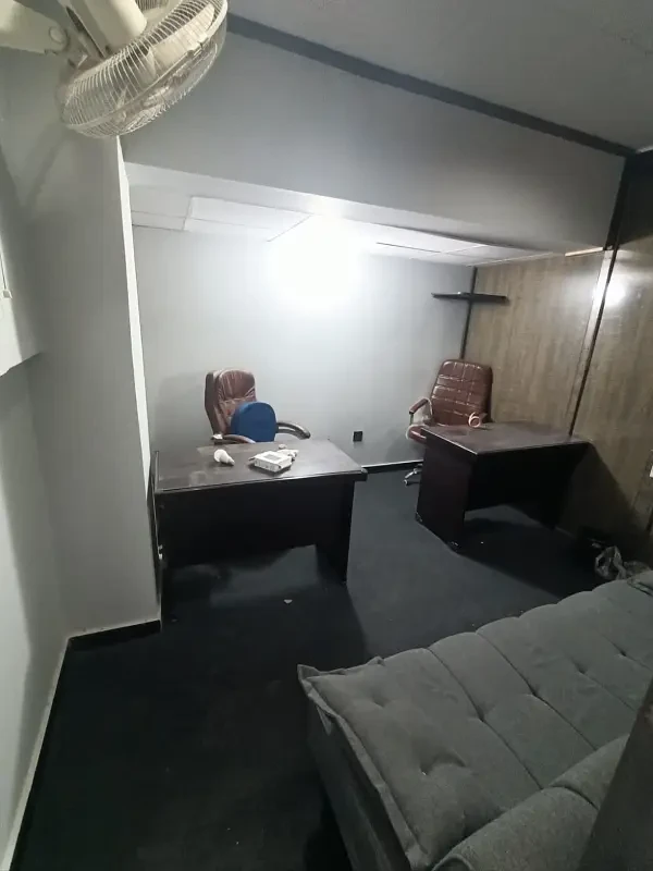 A newly renovated 500 sq. ft. commercial office is available for rent on the second floor, featuring 1 hall, an executive chamber, a tiled washroom, and a kitchen.
