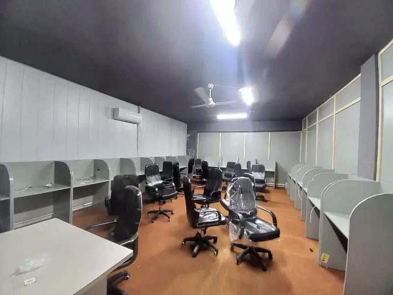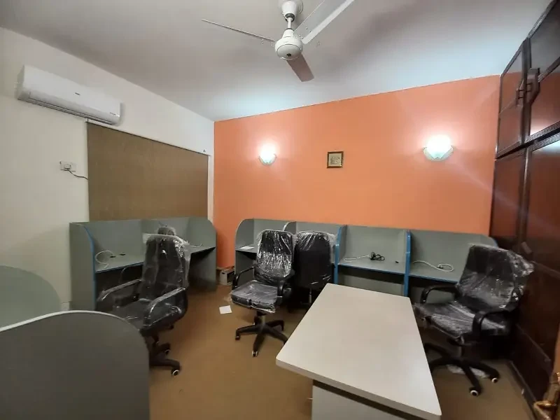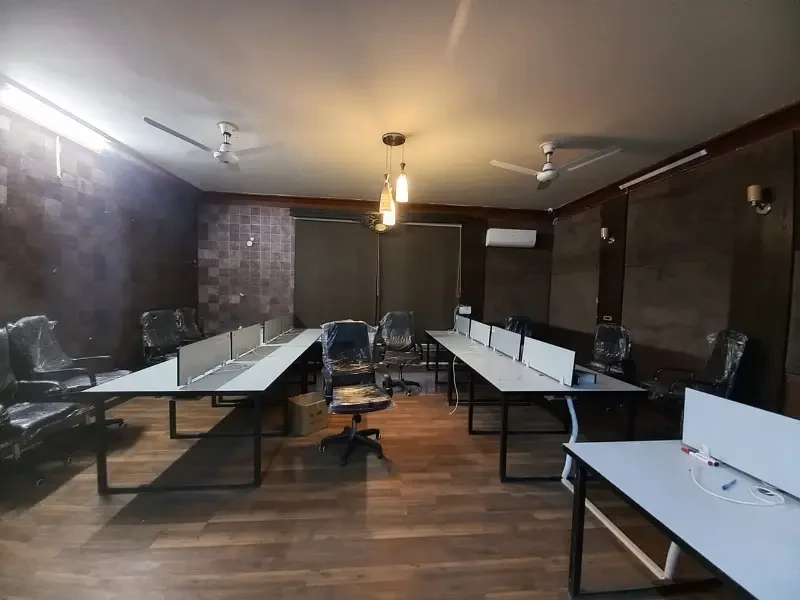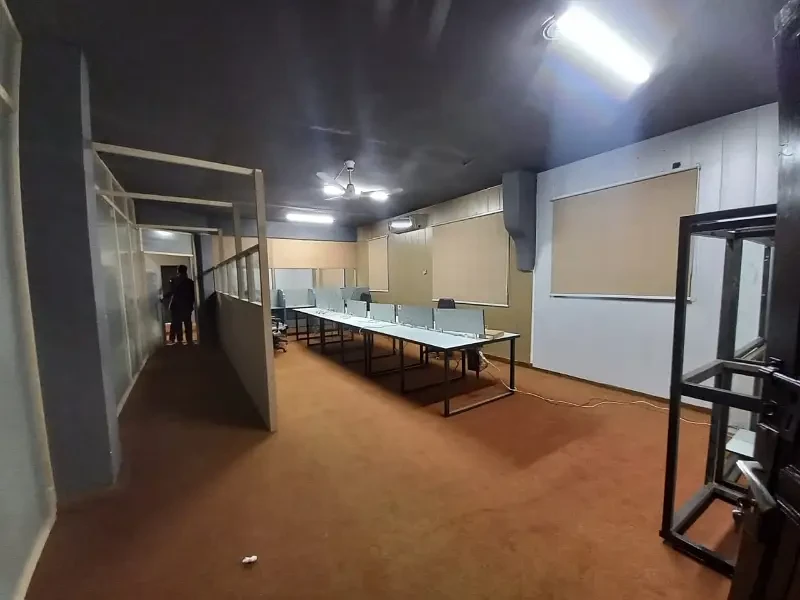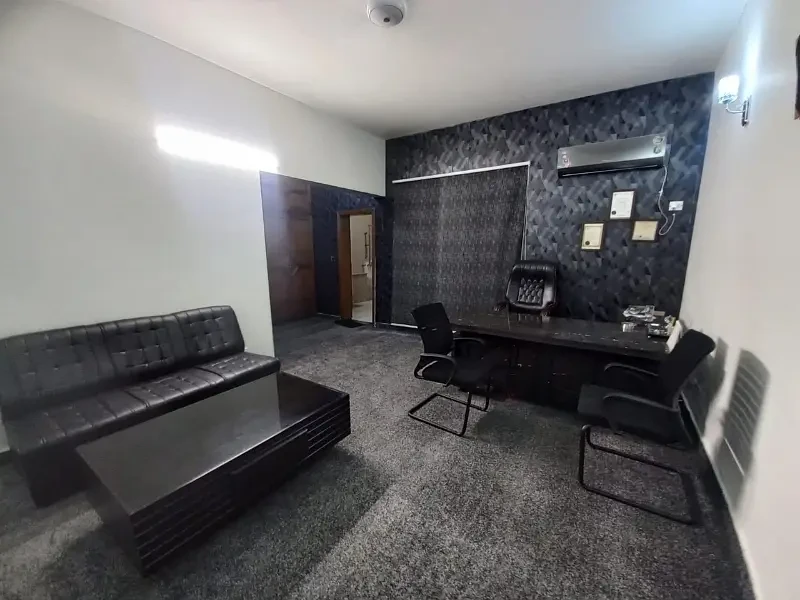 The layout features a large hall on the upper floor, three bedrooms upstairs, and a spacious lower portion dedicated for office operations. The property offers ample space and a professional environment suitable for companies, consultants, or executive offices.