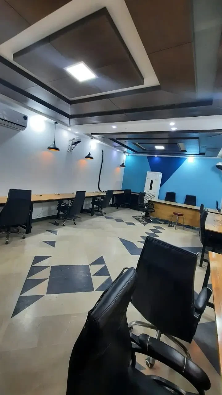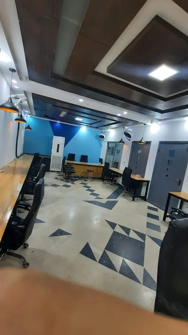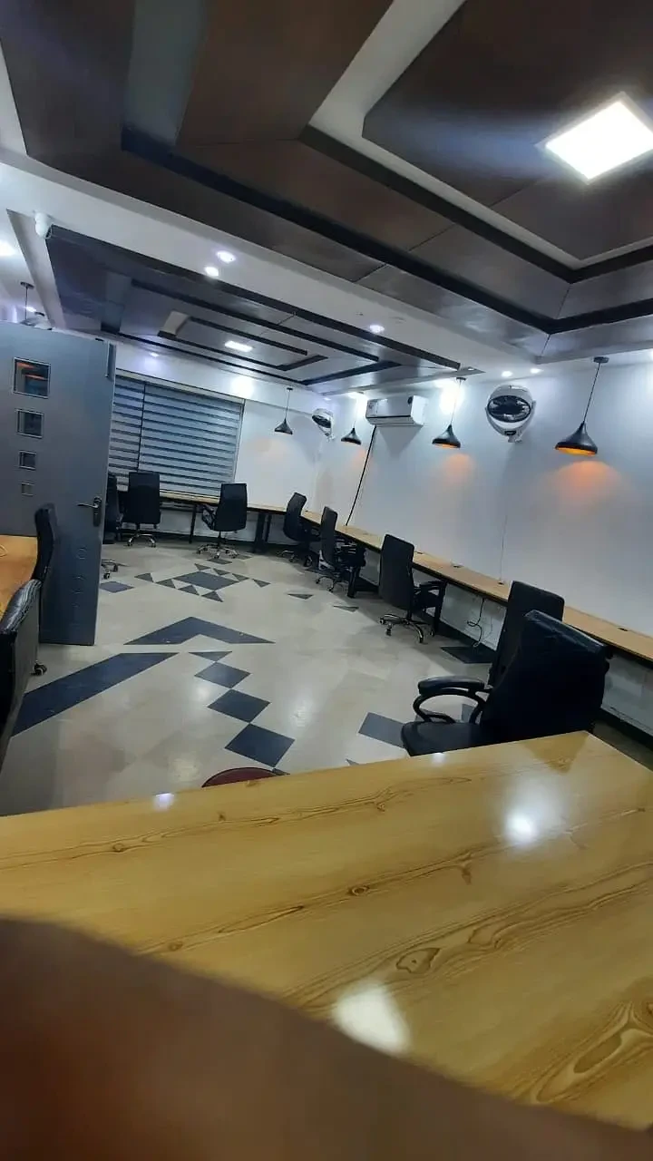 A fully furnished 4 Marla office is available for rent on the 1st floor of a prime plaza located on a main road corner with ample parking space. The office comes ready for immediate use, featuring new air conditioning, furniture, internet connectivity, and working security cameras. Lift access is available on demand, ensuring convenience for staff and visitors.
