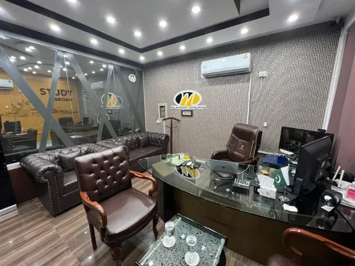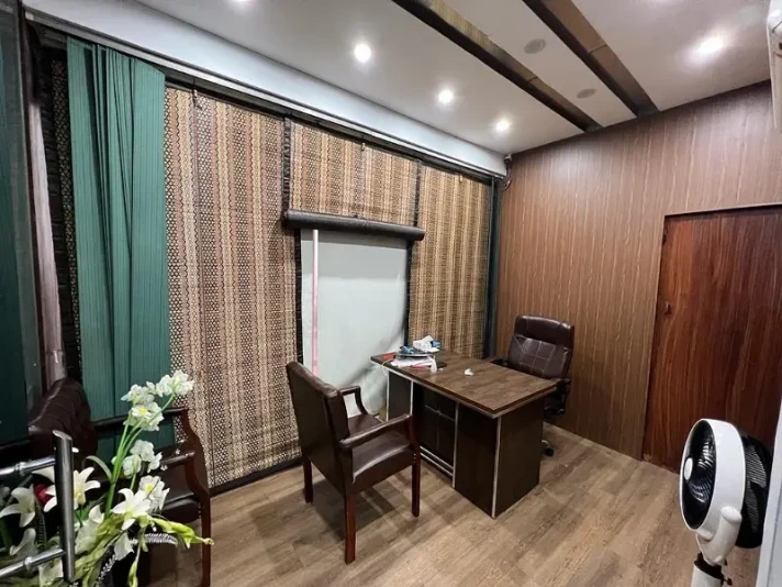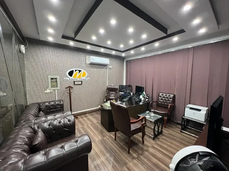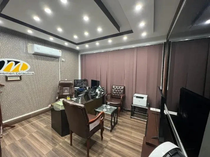 The office features a fully decorated hall, one executive room, and one meeting room, providing ample space for both collaborative and private work. It comes with new tiled flooring, a stylish ceiling design, and beautifully finished walls that create an elegant and welcoming environment. Additional amenities include a separate bath and kitchen, offering added convenience for daily operations.
